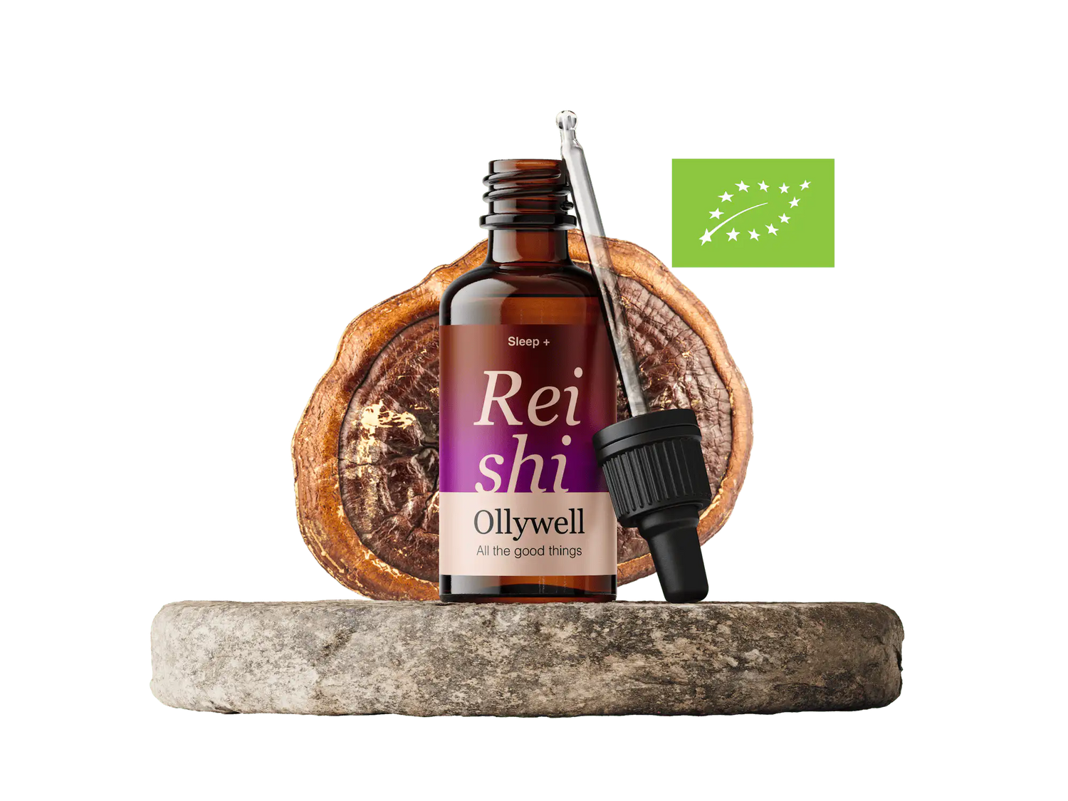 EU Organic gecertificeerde paddenstoel die stressvermindering, slaapkwaliteit en immuunfunctie ondersteunt. Gekweekt zonder pesticiden en GMO onder gecontroleerde omstandigheden die voldoen aan de strenge biologische normen van de Europese Unie.